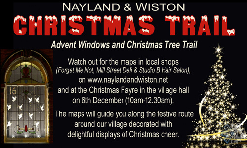 The Trail is back by popular demand! It has been wonderful in recent years to get together as a community and bring a little seasonal cheer to the streets of Nayland and Wiston. Once again residents have set their Christmas creativity free to be enjoyed by us all.